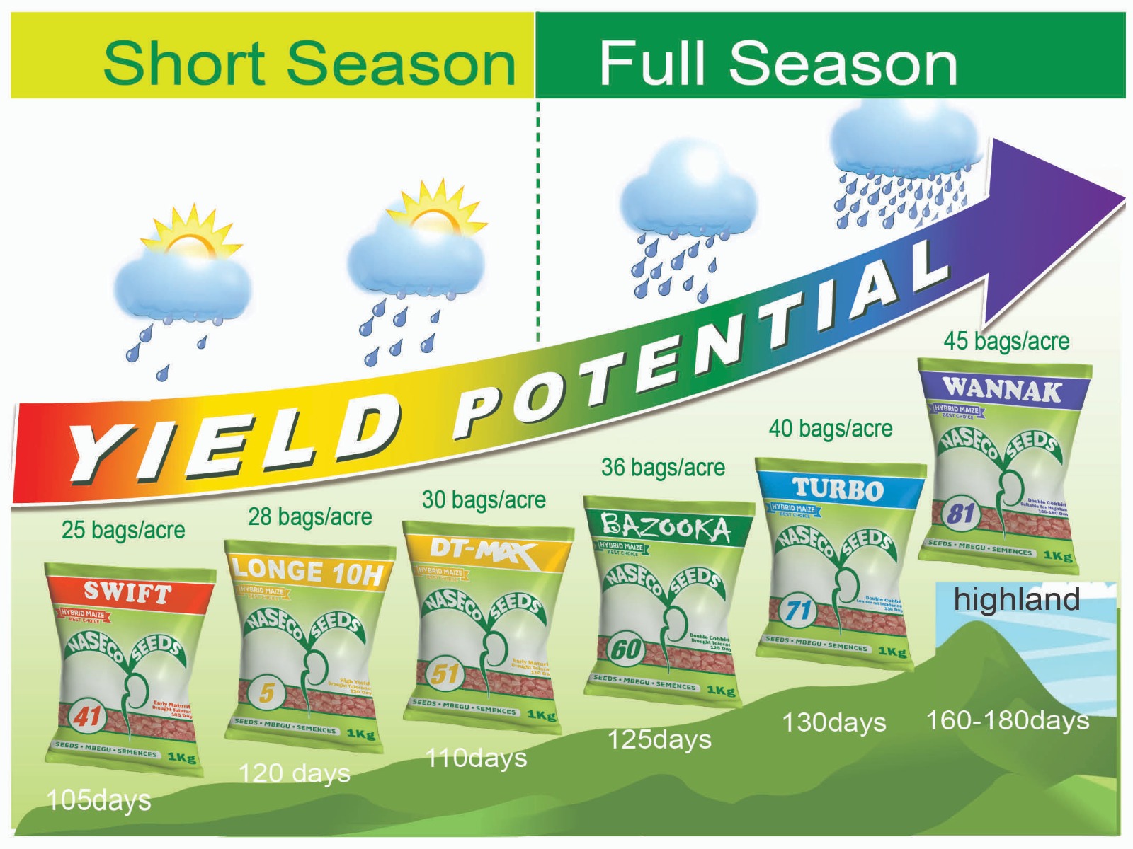 | Bazooka | 125 | 3.6 – 4.0 | Mid & transitional altitude | Double cobber, superior yields, good grain quality, ideal for silage, moderate tolerance to MLN | NARO/2013/MAZ/022 |